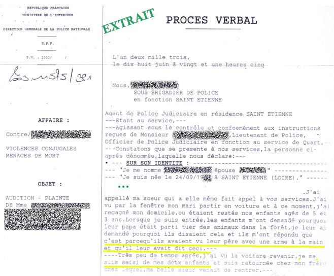 Vous pouvez cliquer sur cette ligne qui est un lien, ceci vous permettra de lire un extrait de mon procès verbal fait le soir même à la police.