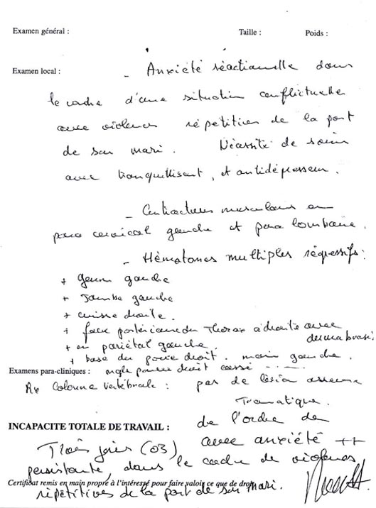 "JE N'AI AUCUNE PLAINTE A FORMULER CONTRE MA FEMME "