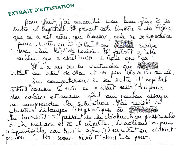 Cela peut paraître bizarre, mais je voulais voir si cet homme avait changé et enfin compris qu'il fallait qu'il se soigne et qu'il assume la vérité. Peut-être le syndrome de Stockholm!!! Ca je n'en sais rien.