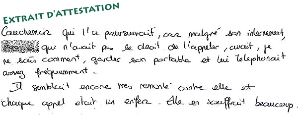 Il ne voulait rien entendre comme avant. Il passait son temps à m'appeler, à me surveiller, à s'imposer sans mon accord à des endrois où je me trouvais. Il n'arrêtait pas.