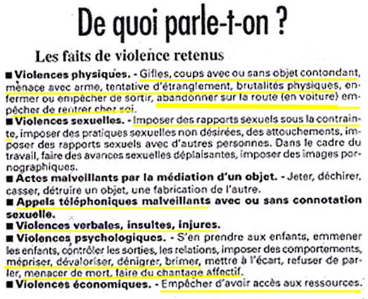 Les gestes ou comportements violents font partie d’une stratégie pour contrôler ou imposer sa volonté à l’autre en utilisant les coups. La violence conjugale constitue un abus de pouvoir et de confiance, elle entrave des relations basées sur l’égalité et le respect. L’isolement, la honte, le poids des idées reçues, les sentiments de culpabilités et l’échec plongent la victime dans le silence, les empêchent d’agir et d’envisager une issue à la souffrance.Il faut que les professionnels et les amis de ces hommes arrêtent d'être complices. C'est le meilleur service à leur rendre et à rendre à leur compagne ou leur ex-compagne.